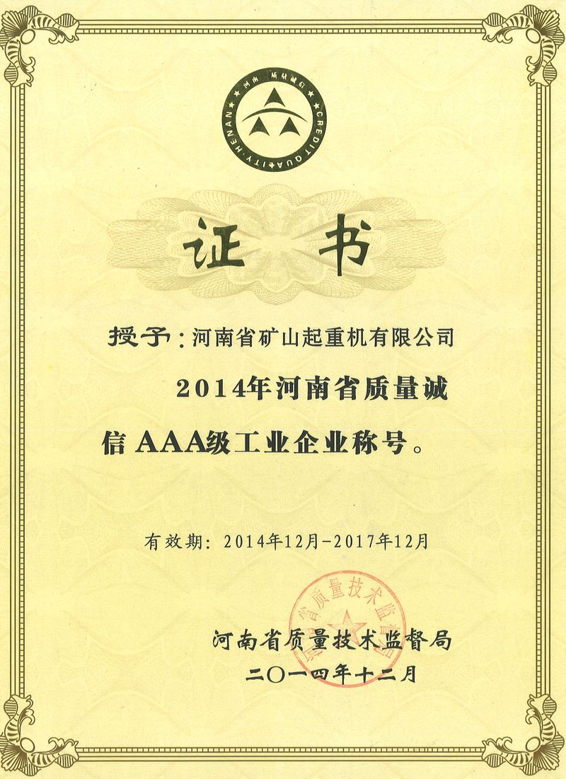 河南省質量誠信AAA企業